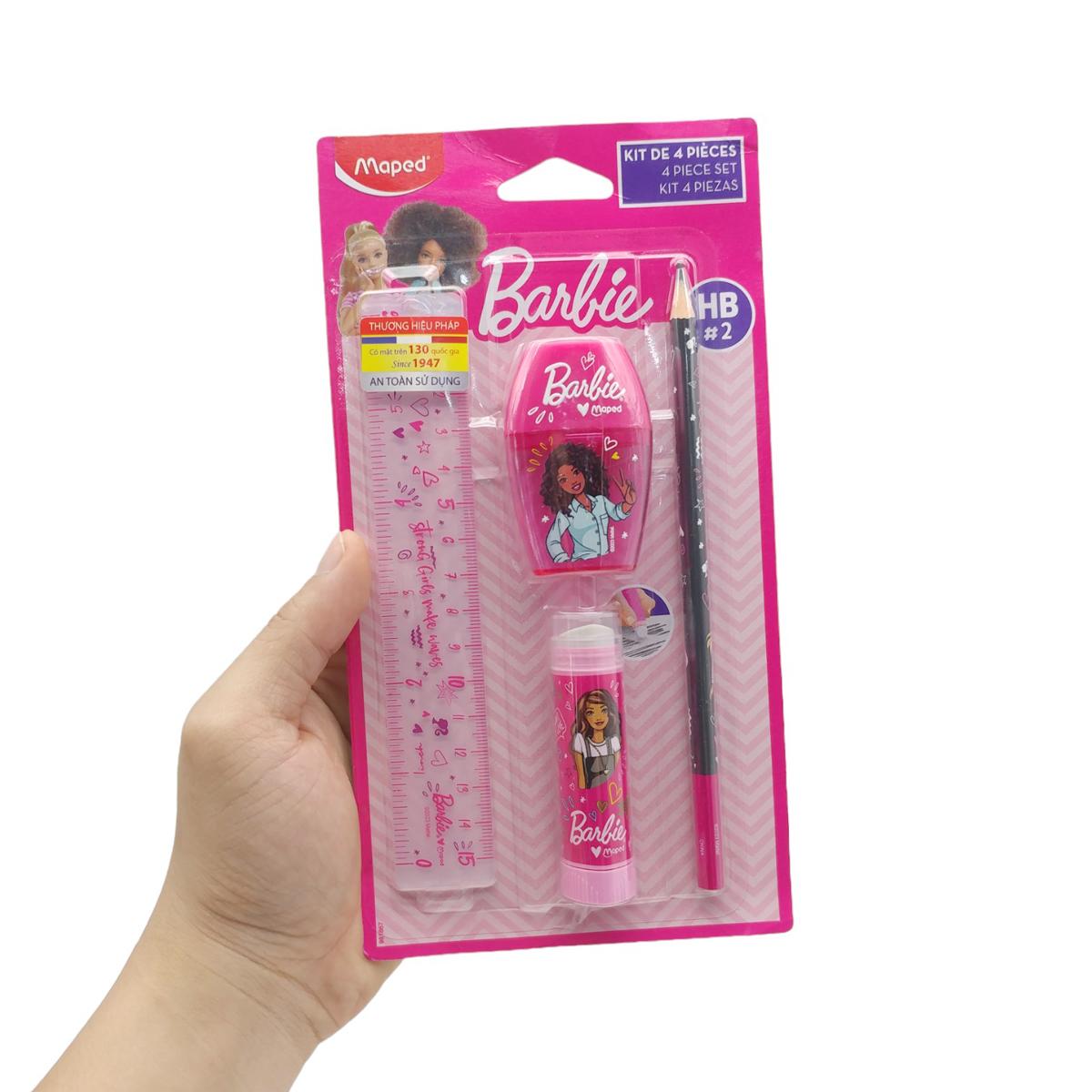 ✨Bộ Dụng Cụ Học Tập 4 Món Barbie - Maped CB98186700 - Màu Hồng
