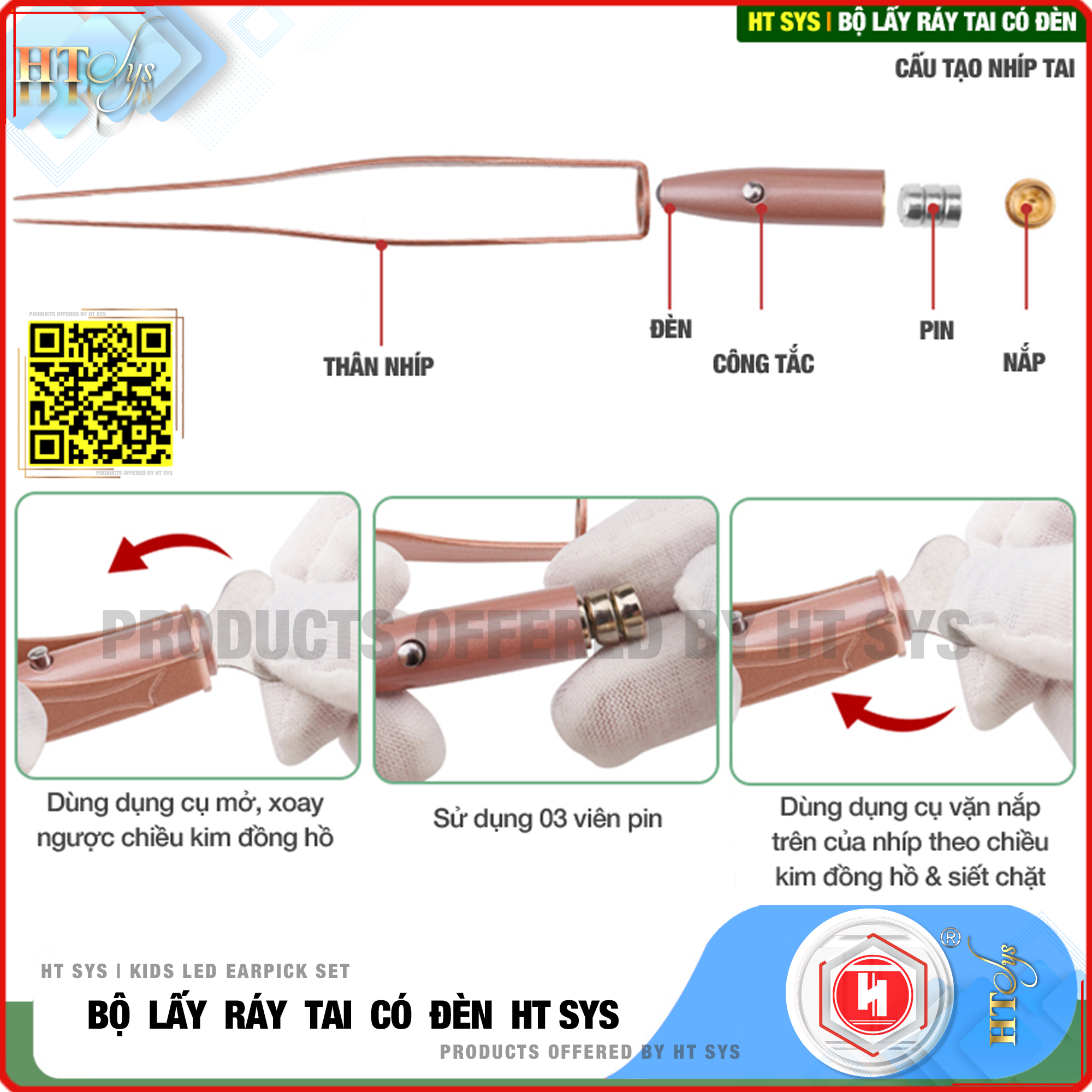 Dụng Cụ Lấy Ráy Tai / Bộ Lấy Ráy Tai / Ngoáy Tai Có Đèn 3 Trong 1 Kèm Kẹp Siêu Tiện - Chính Hãng HT SYS ❖ Mô tả sản phẩm :