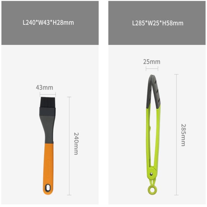 6 : Kẹp ( L285W25H58mm ) / Thiết kế góc kẹp rộng ( Tay cầm chắc chắn ) Sử dụng gắp , kẹp thực phẩm có kích thước và trọng lượng lớn như : Sườn nướng , bít tết