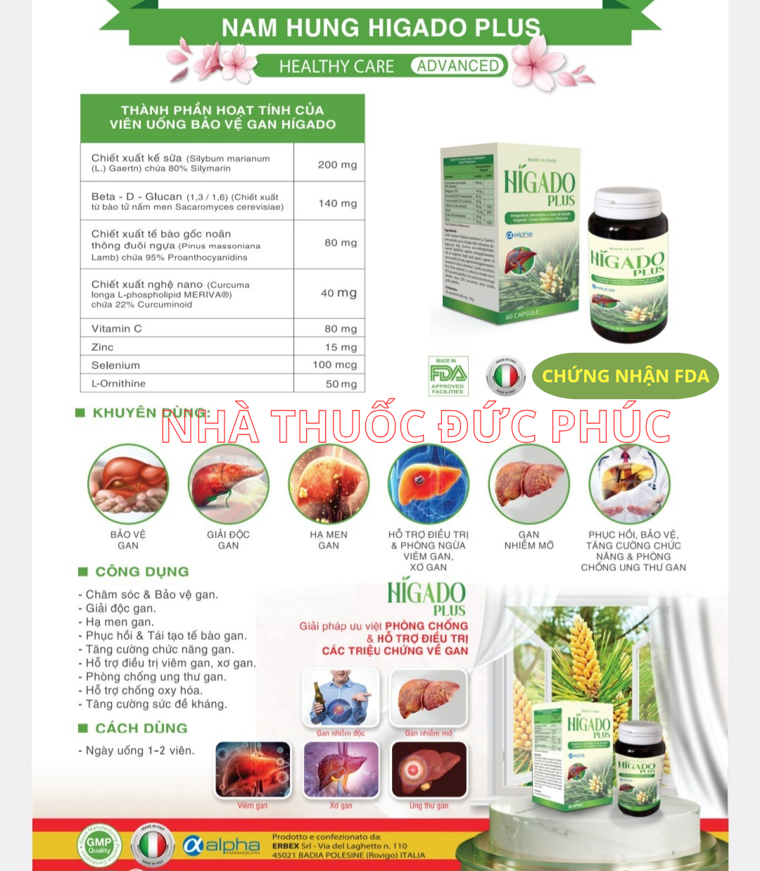 ✨Bổ gan cao cấp HIGADO PLUS Chiết Xuất Tế Bào Gốc Nõan Thông Đuôi Ngựa, Cao khô Kế sữa, Ornithine,Betaglucan,CVitamin C, Selen, Kẽm, Curcumin Nghệ giúp chống oxy hóa,giải độc gan,hạ men gan, gan nhiễm mỡ, taeng cường chức năng gan