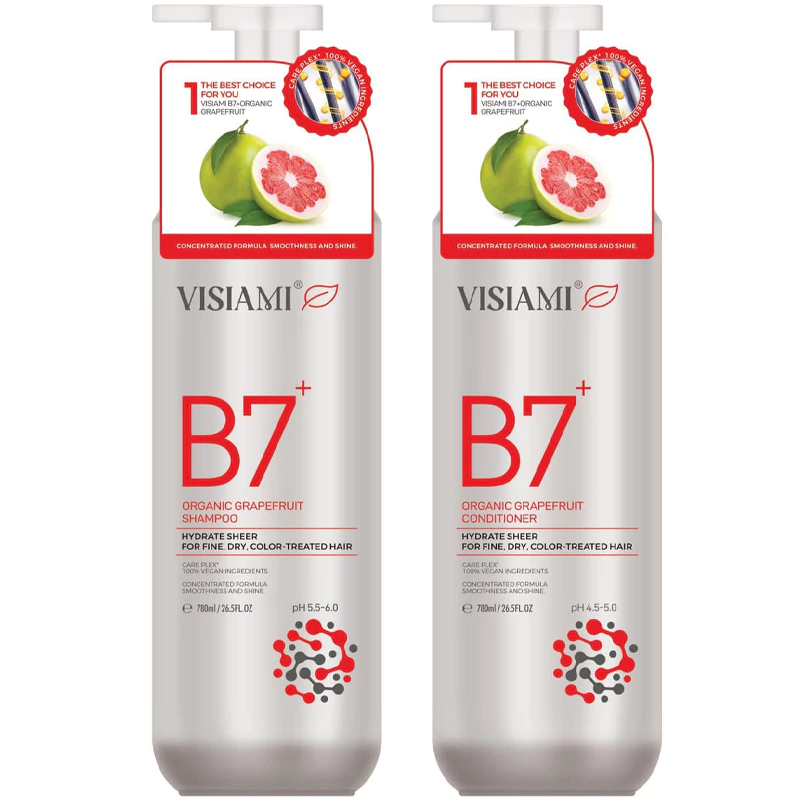 ✨BỘ GỘI XẢ DƯỠNG TÓC ORGARNIC BƯỞI VISIAMI B7+ GRAPEFRUIT SHAMPOO AND CONDITIONER 780MLX2 giảm rụng, mọc tóc nhanh cho tóc thưa mảnh khô