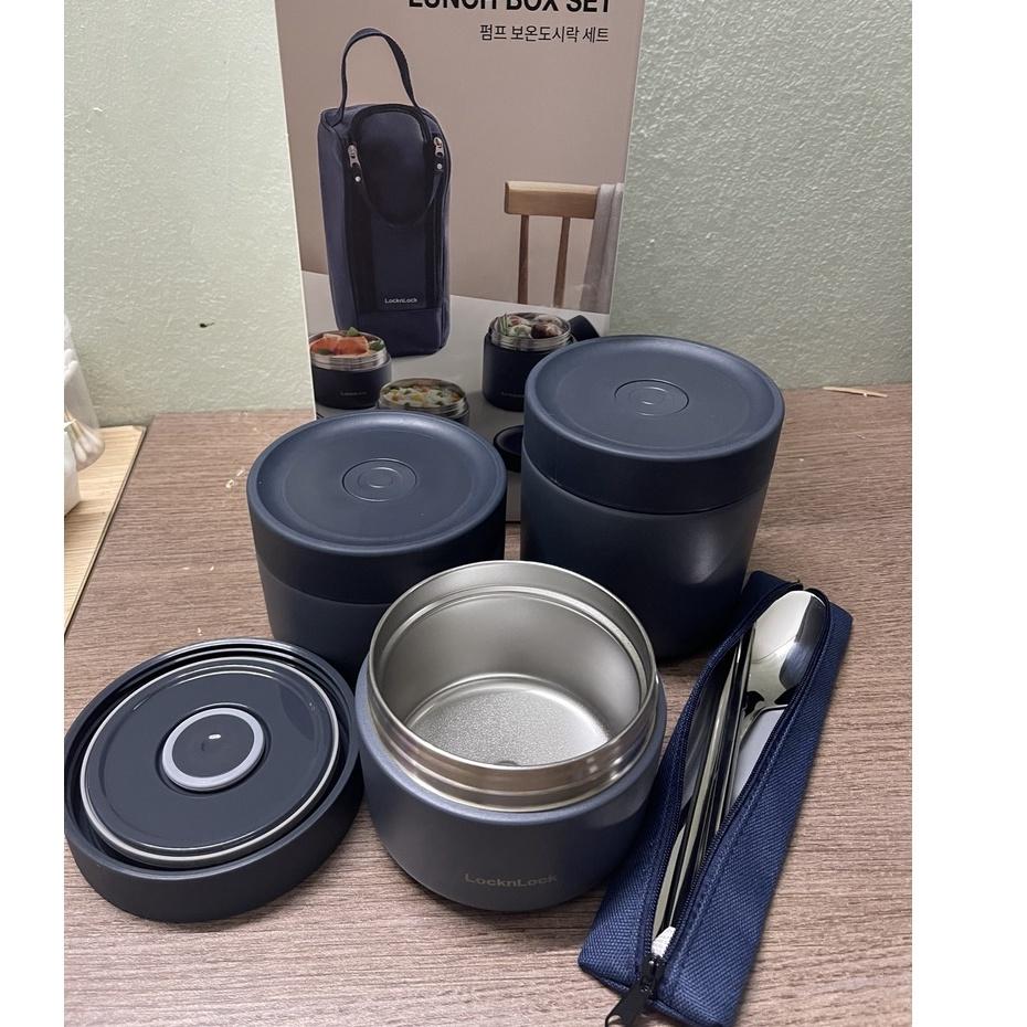 Thông tin sản phẩm Bộ hộp cơm giữ nhiệt Lock&Lock Lunch Box LHC8052S01 3 hộp giữ nhiệt kèm túi, muỗng đũa màu xanh - K-MALL