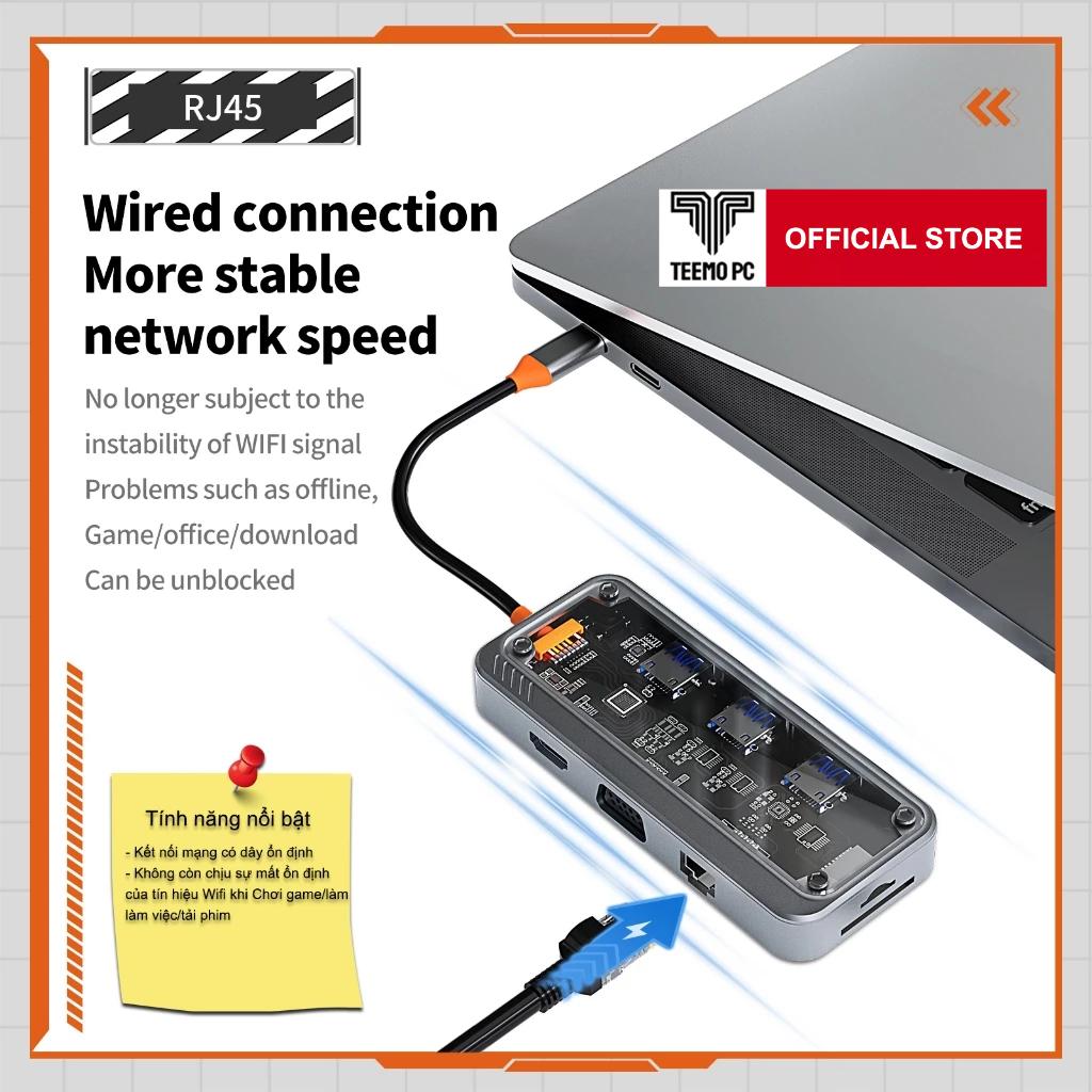 MÔ TẢ SẢN PHẨM Cổng loại C 11 trong 1: Tương thích HDMI + USB3.0 * 1 + USB2.0 * 3 + PD 87W + TF + SD + 100M RJ45 + AUX +