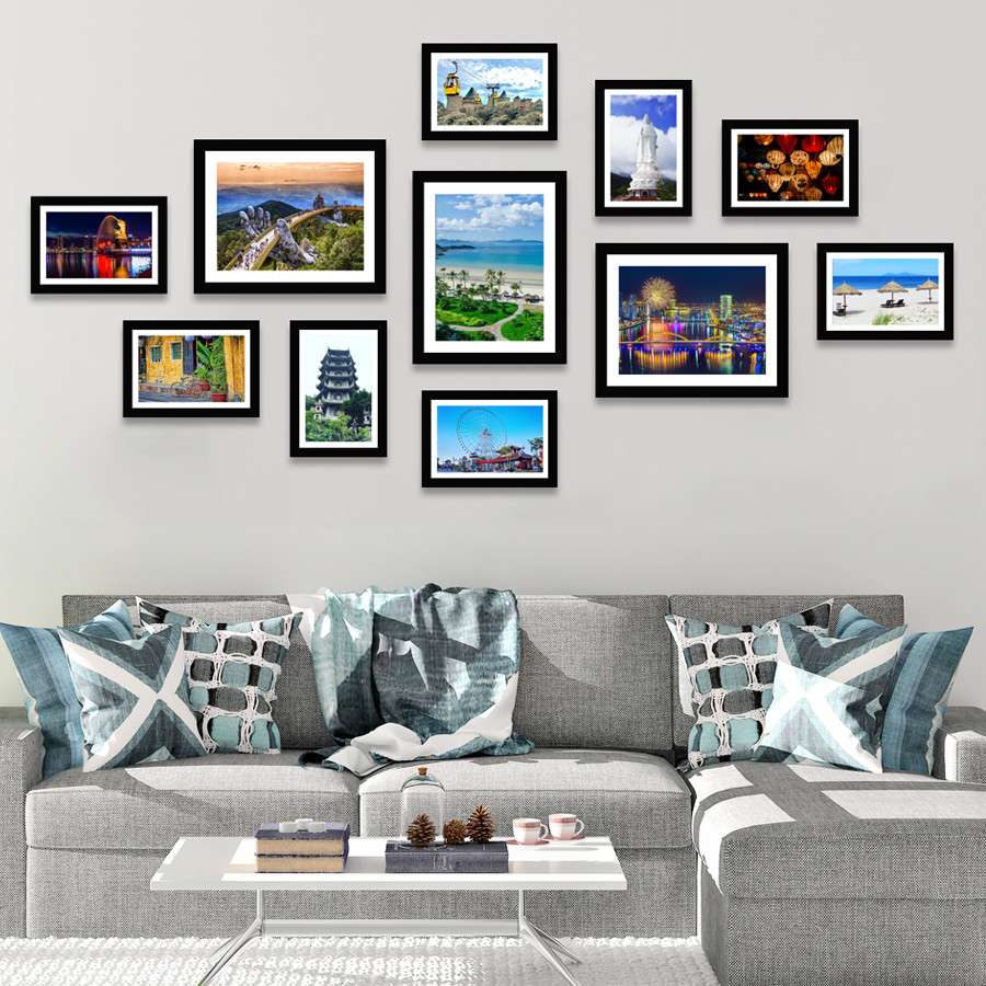 ✨Bộ Khung Ảnh Treo Tường Phong Cảnh Đà Nẵng Đẹp Tặng Kèm bộ ảnh như hình mẫu, đinh treo tranh và sơ đồ treo - PGC282