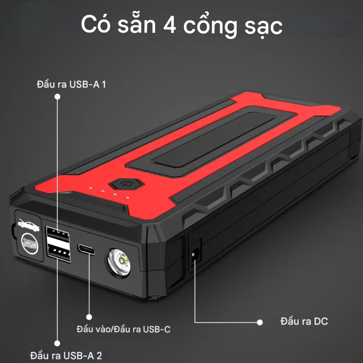 - Chất liệu: ABS+PC – Không gì tệ hơn khi xe bạn bỗng chết máy giữa đường chỉ vì bình ắc-quy cạn kiệt. Với kích bình ô tô Choetech TC0009, mọi tình huống khẩn cấp sẽ được xử lý nhanh – gọn – an toàn, giúp bạn tự tin cầm lái trên mọi cung đường dù là ngày thường hay những chuyến đi xa. Thông tin chi tiết Dung lượng lớn 16000mAh – Dự phòng năng lượng toàn diện – Tích hợp viên pin dung lượng 16000mAh (59.2Wh), không chỉ giúp kích bình mà còn hoạt động như một pin sạc dự phòng đa năng. – Hỗ trợ sạc cho điện thoại, máy tính bảng, camera hành trình, loa Bluetooth và nhiều thiết bị di động khác. Nhiều cổng sạc nhanh – Sạcđa thiết bị, đa dạng lựa chọn