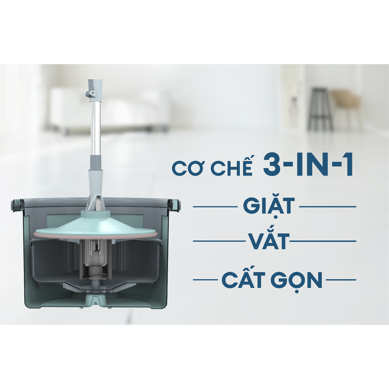 THÔNG SỐ SẢN PHẨM - Mã sp: MOP-Q2 - Xuất sứ: Trung Quốc - Màu sắc: Màu xanh dương – Chất liệu : Nhựa, inox, sợi bông - Định lượng: 1 thùng giặt, 1 cây