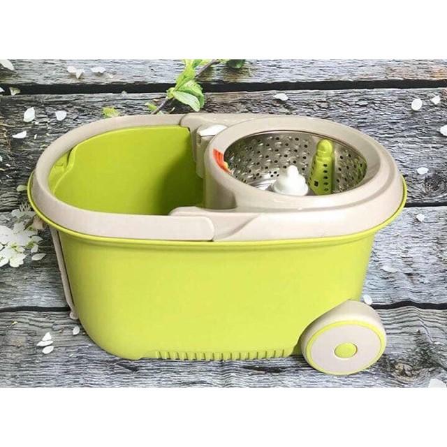 Bộ cây lau nhà xoay tay 360 độ MOP- L003 Màu sắc: Xanh lá cây Chất liệu : Nhựa, inox, sợi bông Kích thước: 49,5 x 31,5 x 30 (cm) -Lồng vắt bằng inox. Độ