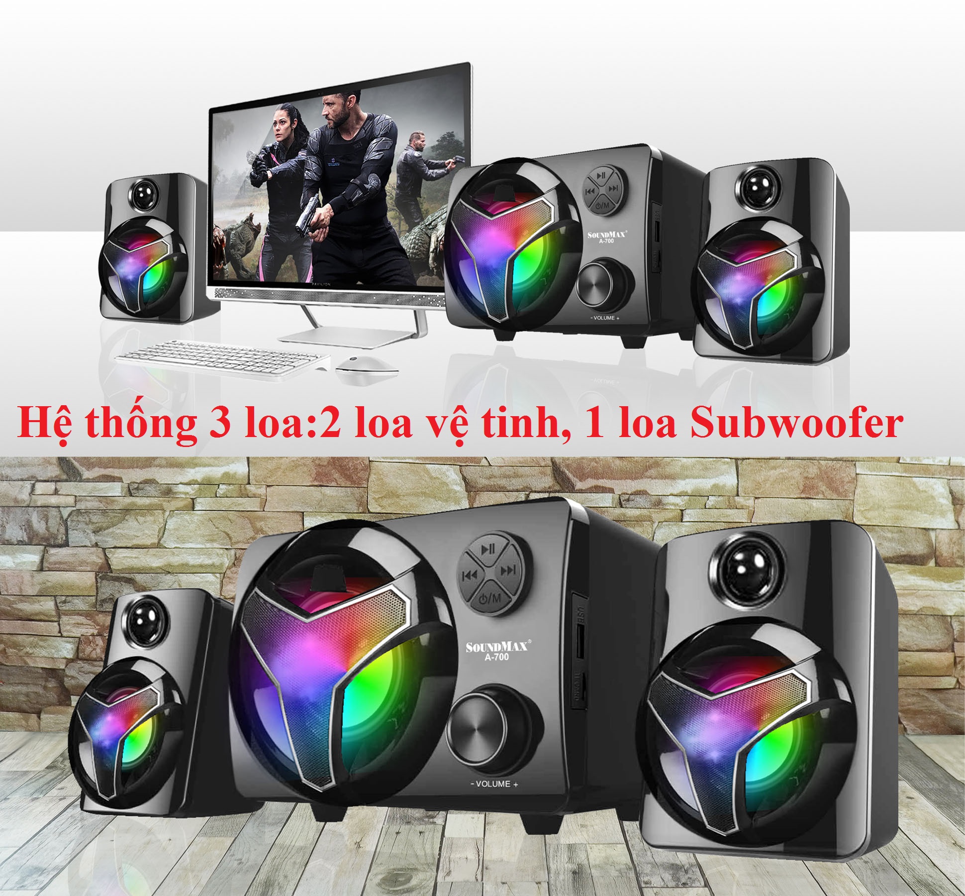 ✨Bộ loa di động 2.1 kết nối AUX / Bluetooth nguồn USB SOUNDMAX A-700 - Hàng chính hãng