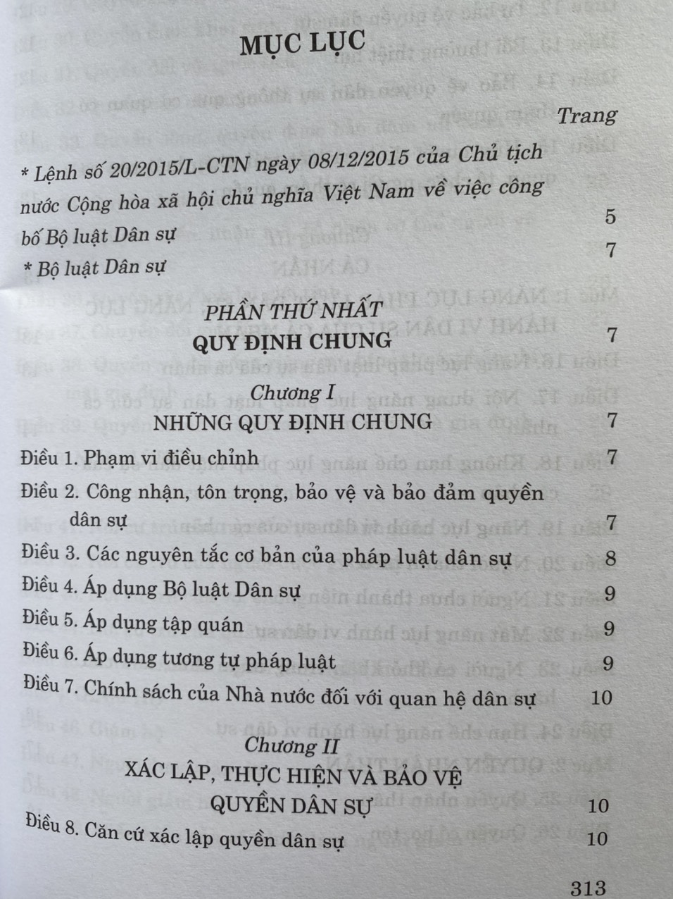 Mua tại TiktokTên sách: Bộ Luật Dân Sự (hiện hành) Tác giả: Quốc hội Nhà Xuất Bản Chính Trị Quốc Gia Sự Thật Tái bản năm 2024 Số trang: 350 Công ty phát hành: NXB CT - QG Sự Thật Bộ luật dân sự 2015 vừa được ban hành ngày 24/11/2015 với nhiều nội dung mới về xác lập, bảo vệ quyền dân sự; năng lực pháp luật dân sự của cá nhân, pháp nhân; hộ gia đình, tổ hợp tác; tài sản; giao dịch dân sự; đại diện; thời hạn, thời hiệu; quyền tài sản; … Bộ luật dân sự 2015 gồm 6 Phần, 27 Chương, 689 Điều (Thay vì Bộ luật dân sự 2005 là 7 Phần, 36 Chương, 777 Điều). Bộ luật này có hiệu lực thi hành từ ngày 01 tháng 01 năm 2017. Trân trọng giới thiệu cùng bạn đọc!