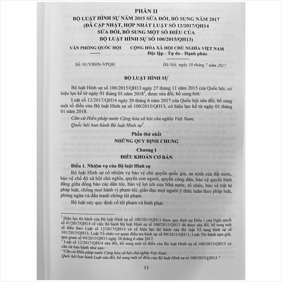 Số: 01/VBHN-VPQH Hà Nội, ngày 10 tháng 07 năm 2017 Cuốn 1: Bộ luật Hình sự năm 2015 sửa đổi, bổ sung 2017 (NXB Công an nhân dân) Tác giả: Nhiều tác giả NXB lao