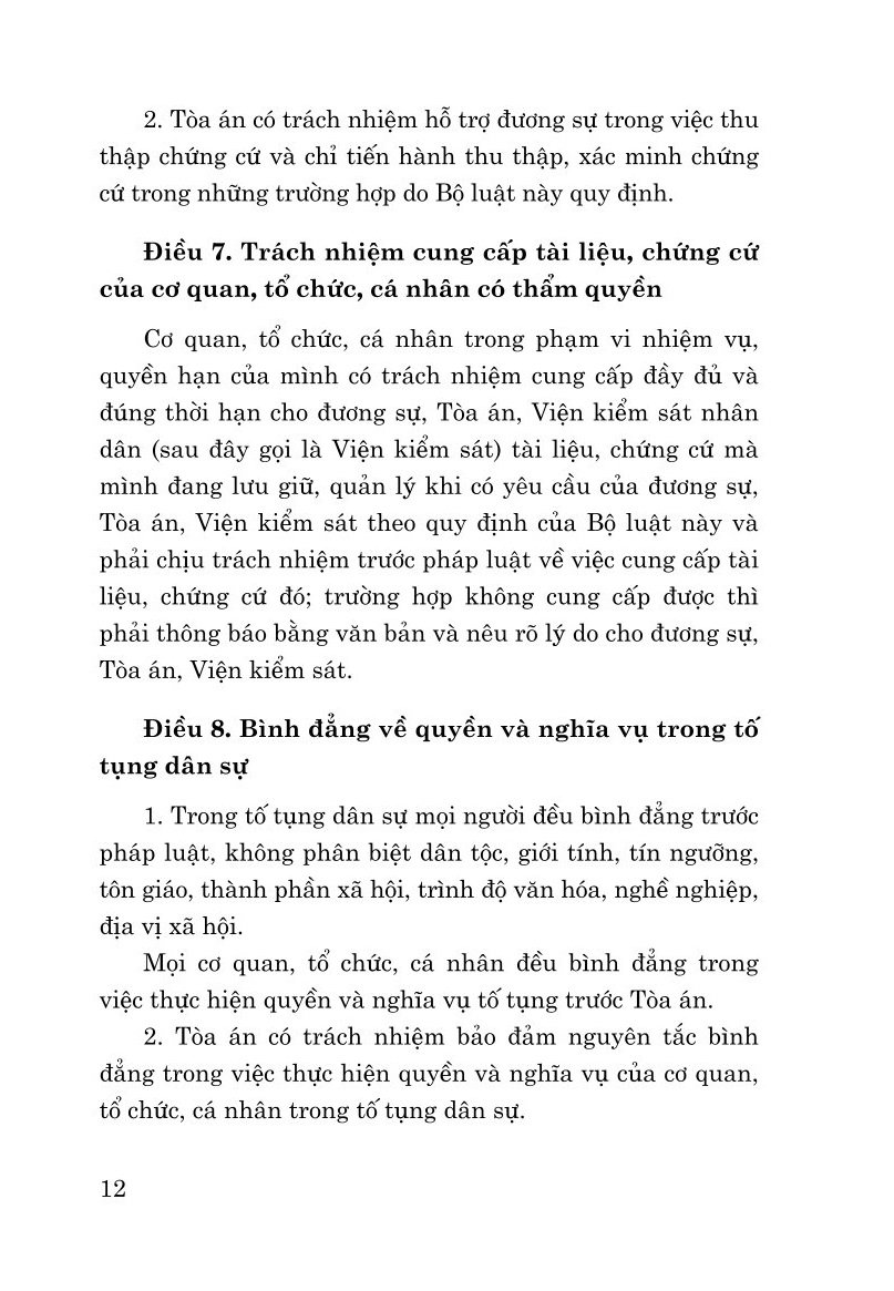 Mua tại TiktokCuốn sách là văn bản nhất thể hóa của Bộ luật Tố tụng Dân sự năm 2015 với nội dung sửa đổi, bổ sung Bộ luật Tố tụng Dân sự năm 2015 của Bộ luật Lao động năm 2019 và Luật Doanh nghiệp năm 2020; gồm 10 phần, 42 chương, 517 điều, quy định những nguyên tắc cơ bản trong tố tụng dân sự; trình tự và thủ tục để khởi kiện, yêu cầu để Tòa án giải quyết tranh chấp dân sự, hôn nhân và gia đình, kinh doanh, thương mại, lao động…, cung cấp cho bạn đọc một văn bản Bộ luật Tố tụng dân sự hoàn chỉnh, thuận tiện trong tra cứu và áp dụng Bộ luật.