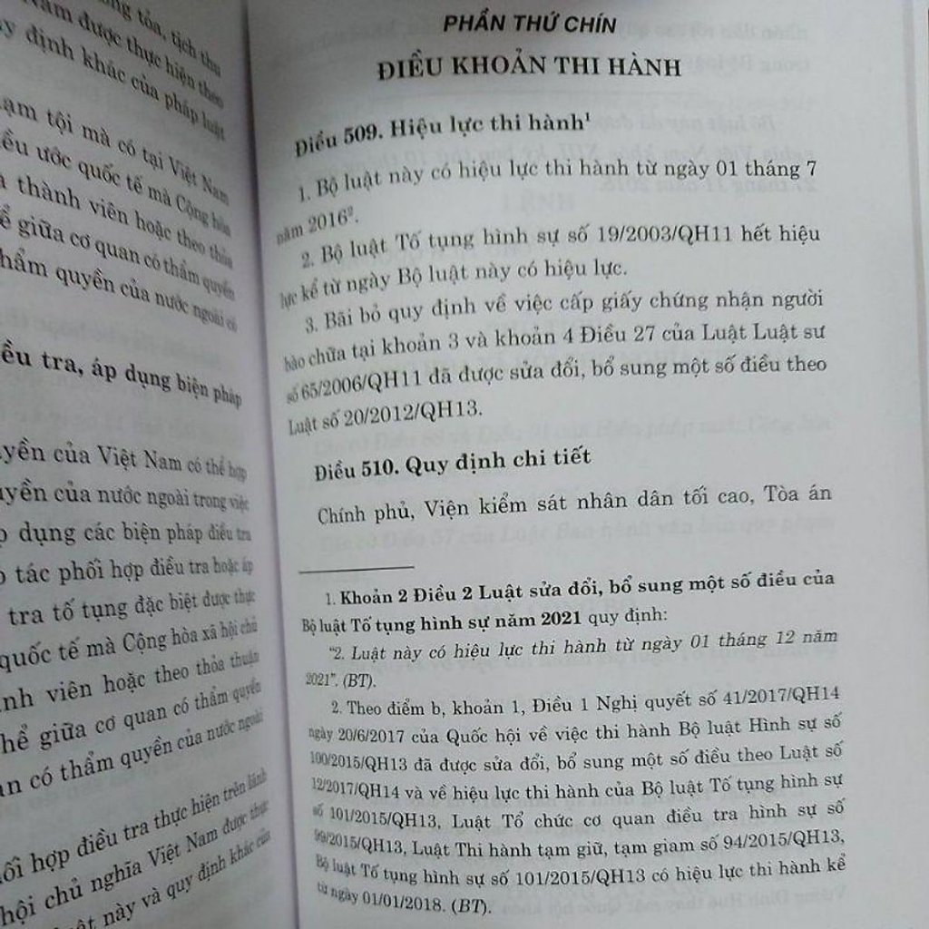 Bộ Luật Hình Sự 2015 (Sửa Đổi, Năm 2017) Bộ Luật Tố Tụng Hình Sự Luật Tổ Chức Cơ Quan Điều Tra Hình Sự Luật Thi Hành Tạm Giữ Tạm Giam Ngày 10-7-2017 văn phòng