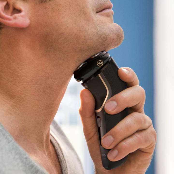 - 3 đầu cạo thiết kế lượn tròn linh động, giúp người dùng cạo sát rất êm ái mà không cắt xước vào da.