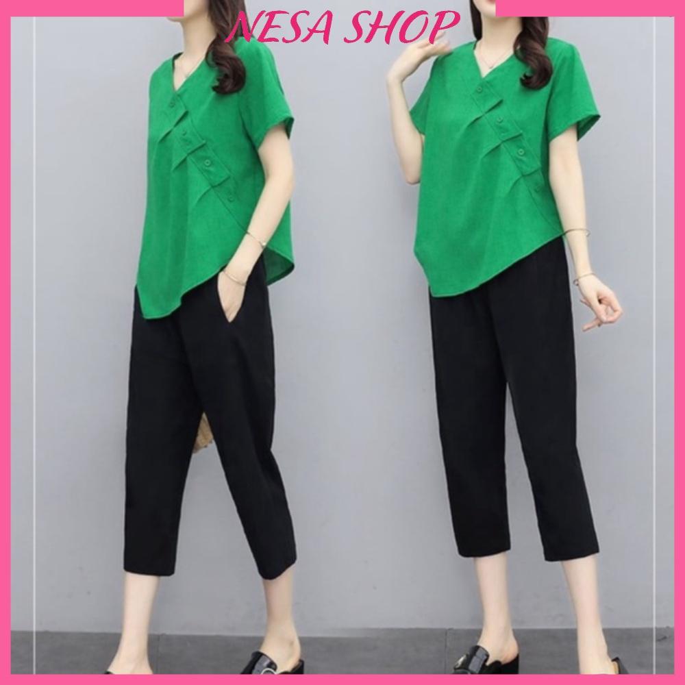 ✨Bộ mặc nhà nữ, chất liệu Đũi mát mẻ, thấm hút mồ hôi, đồ bộ mặc nhà, đồ bộ trung niên nữ NeSa Shop