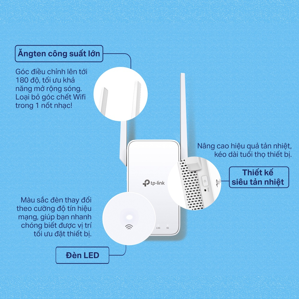- Chế độ mở rộng sóng tăng cường tín hiệu Wi-Fi đến các điểm không thể hoặc khó đi dây trước đây một cách hoàn hảo - Kích thước nhỏ gọn và thiết kế gắn