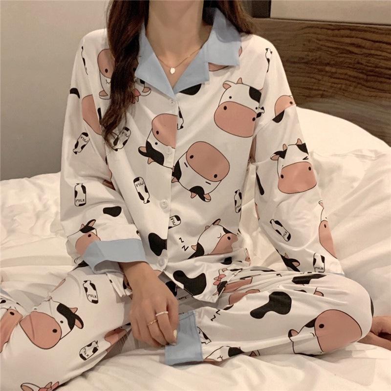 ✨Bộ Ngủ Pijama Nữ HÀNG CÓ SẴN Bộ mặc nhà, Bộ Đồ Ngủ Chất Liệu Cotton Sợi Tơ Sữa Dài Tay Họa Tiết Dễ Thương Cao Cấp