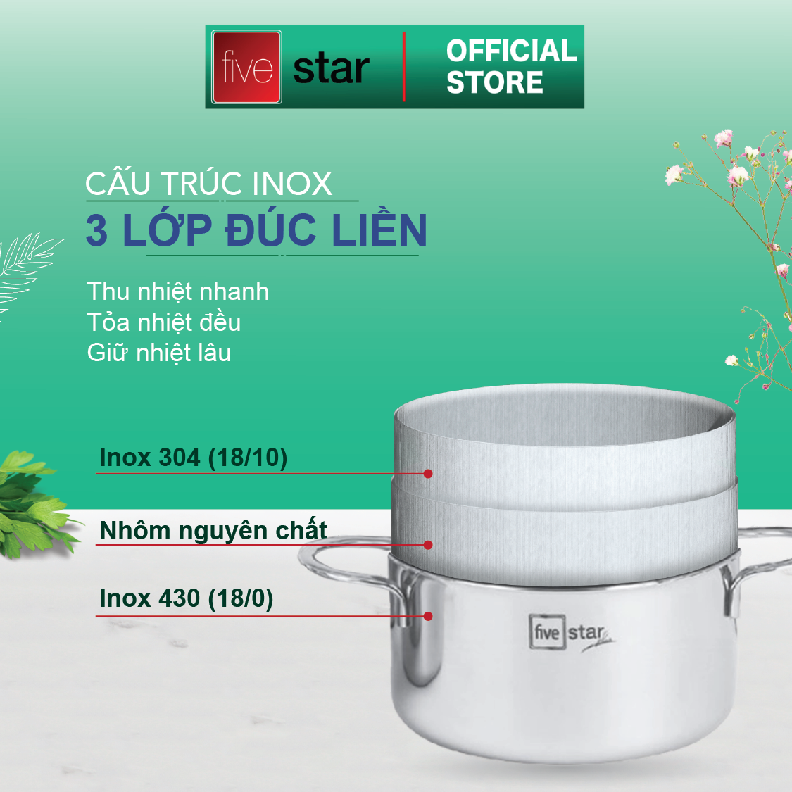 ✨Bộ Nồi Inox 304 bếp từ 3 lớp đáy liền 4 món nắp kính Fivestar tặng 2 muỗng canh