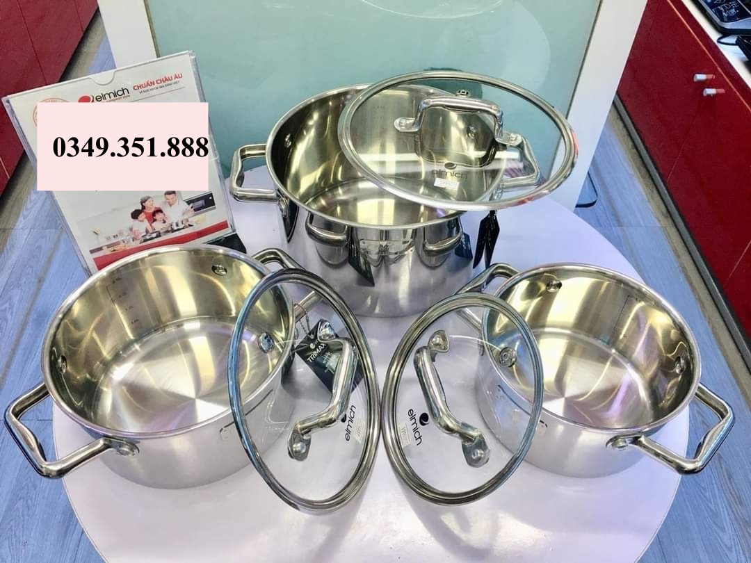 Bộ Nồi Inox 304 Thân Đáy Đúc Liền Khối Elmich Trimax Eco EL-8001 Chính Hãng - Zalo 0816 505 655