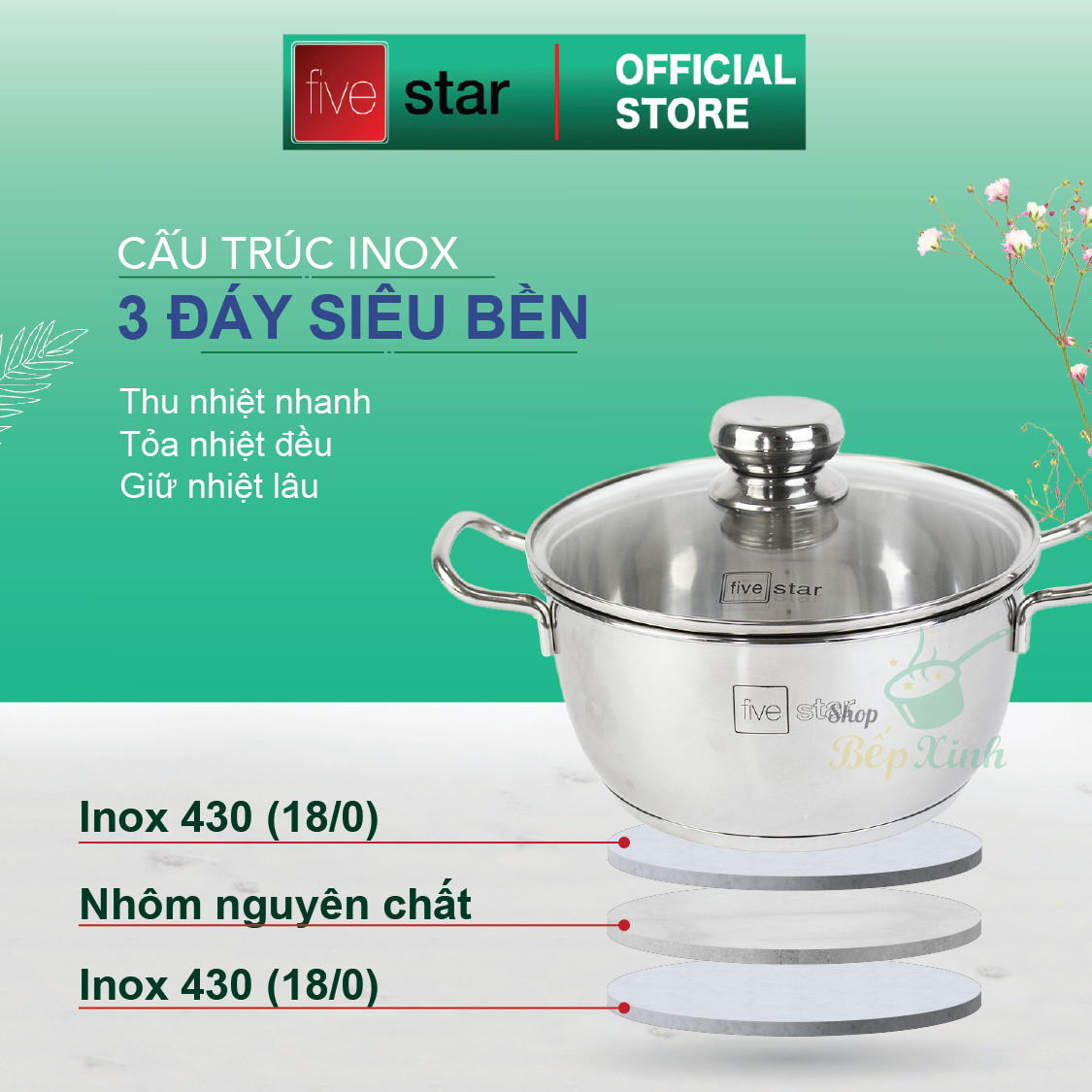 ✨Bộ Nồi và chảo 3 Đáy Inox 430 Fivestar Standard bếp từ nắp kính