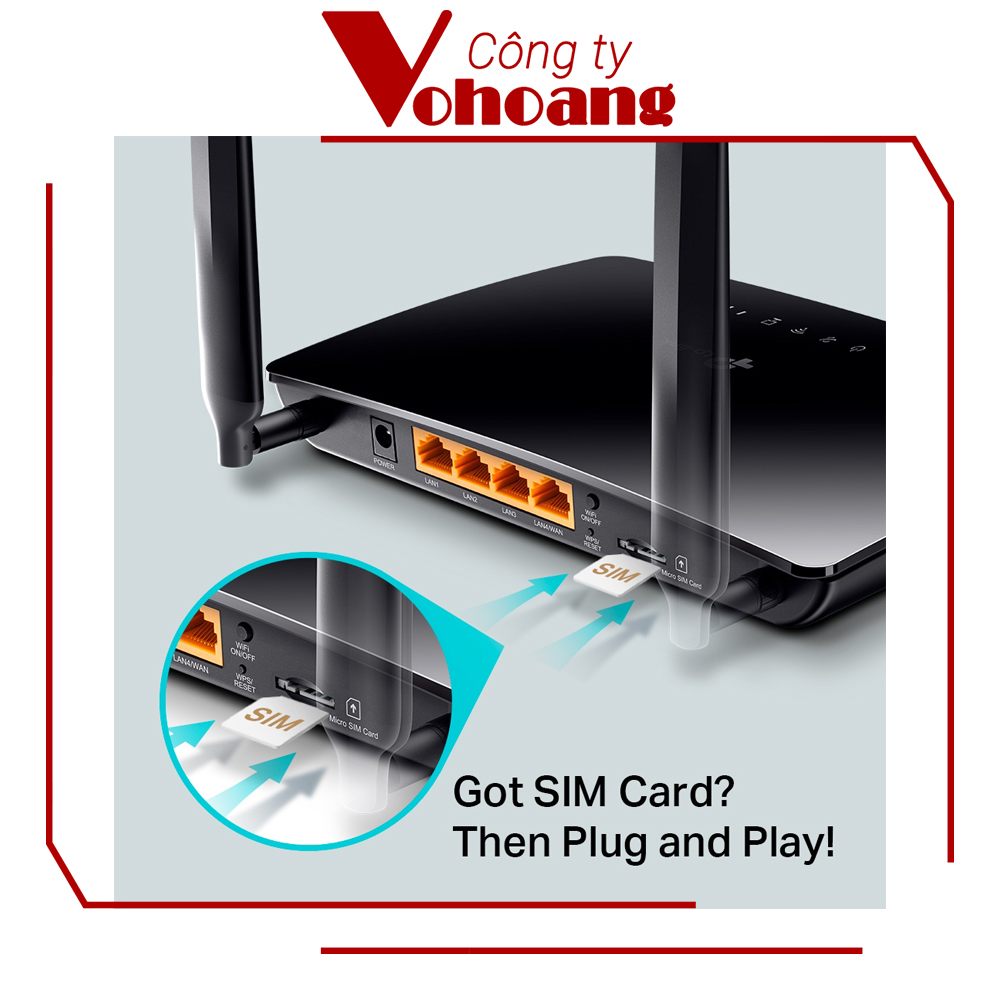 - Hỗ trợ 4G LTE tốc độ cao, gắn trực tiếp SIM - Wi-Fi chuẩn N tốc độ đến 300 Mbps - 2 ăng-ten ngoài tăng cường thu phát sóng ổn định - Vỏ ngoài chịu thời tiết, đạt chuẩn chống nước IP65 - Dễ dàng lắp đặt ngoài trời, độ bền cao - Hỗ trợ 32 thiết bị kết nối cùng lúc - 2 cổng LAN tiện cho camera/IPTV/PC - Quản lý dễ dàng qua ứng dụng TP-Link Tether - Tương thích nhiều nhà mạng 4G tại Việt Nam - Chế độ bảo mật WPA/WPA2 an toàn LƯU Ý KHI MUA HÀNG Cảm ơn quý khách đã quan tâm đến sản