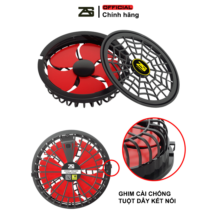 ✨Bộ Phụ Kiện Áo Điều Hòa ZASKY Nhật Bản Cao Cấp, Dành Cho Người Lao Động Ngoài Trời Nắng Nóng, Quạt 12V Không Chổi Than, PIN 40.000mAh, BH 12 Tháng