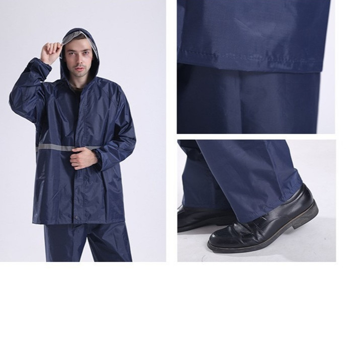 Màu sắc: phối màu xanh dương Lớp vải nhập khẩu đặc biệt siêu chống thấm phía trong áo đảm bảo chống thấm nước tuyệt đối - Có 2 vạt áo che khóa kéo phía trước,