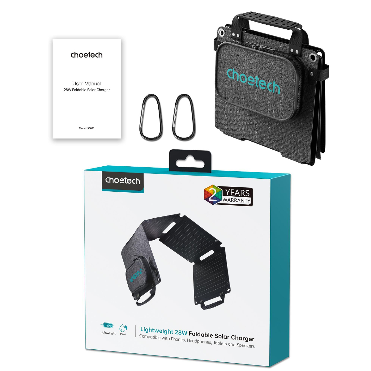 ✨Bộ sạc năng lượng mặt trời di động Choetech SC005-V5 công suất 28w có thể gấp gọn (Hàng chính hãng)