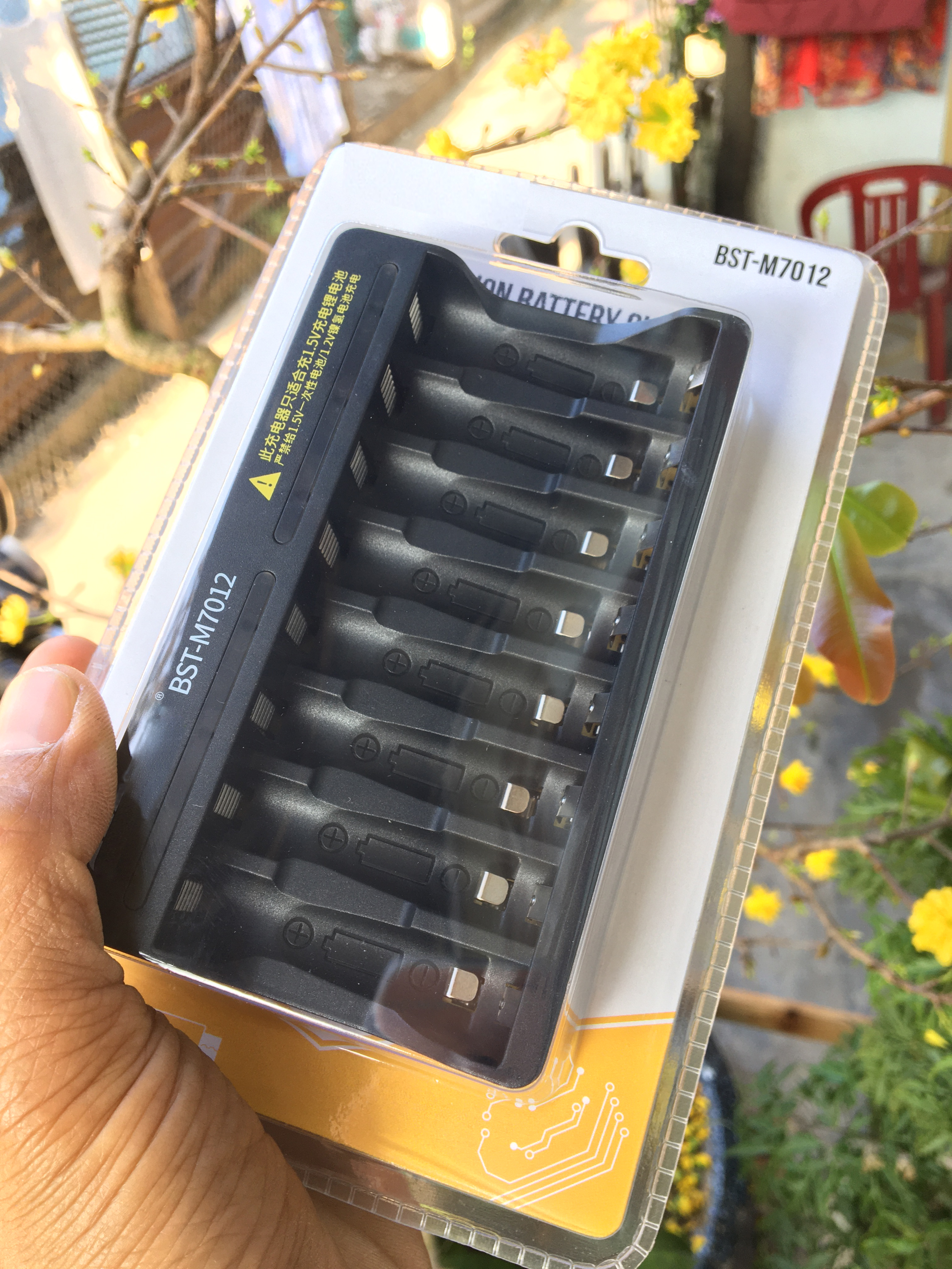 Bộ sạc chuyên dụng pin Lithium 8 khe độc lập,có thể sạc 1 lúc 8 pin AA hoặc 8 pin AAA hoặc sạc kết hợp, sạc 1 pin cũng được. Điện áp vào 5V 2A