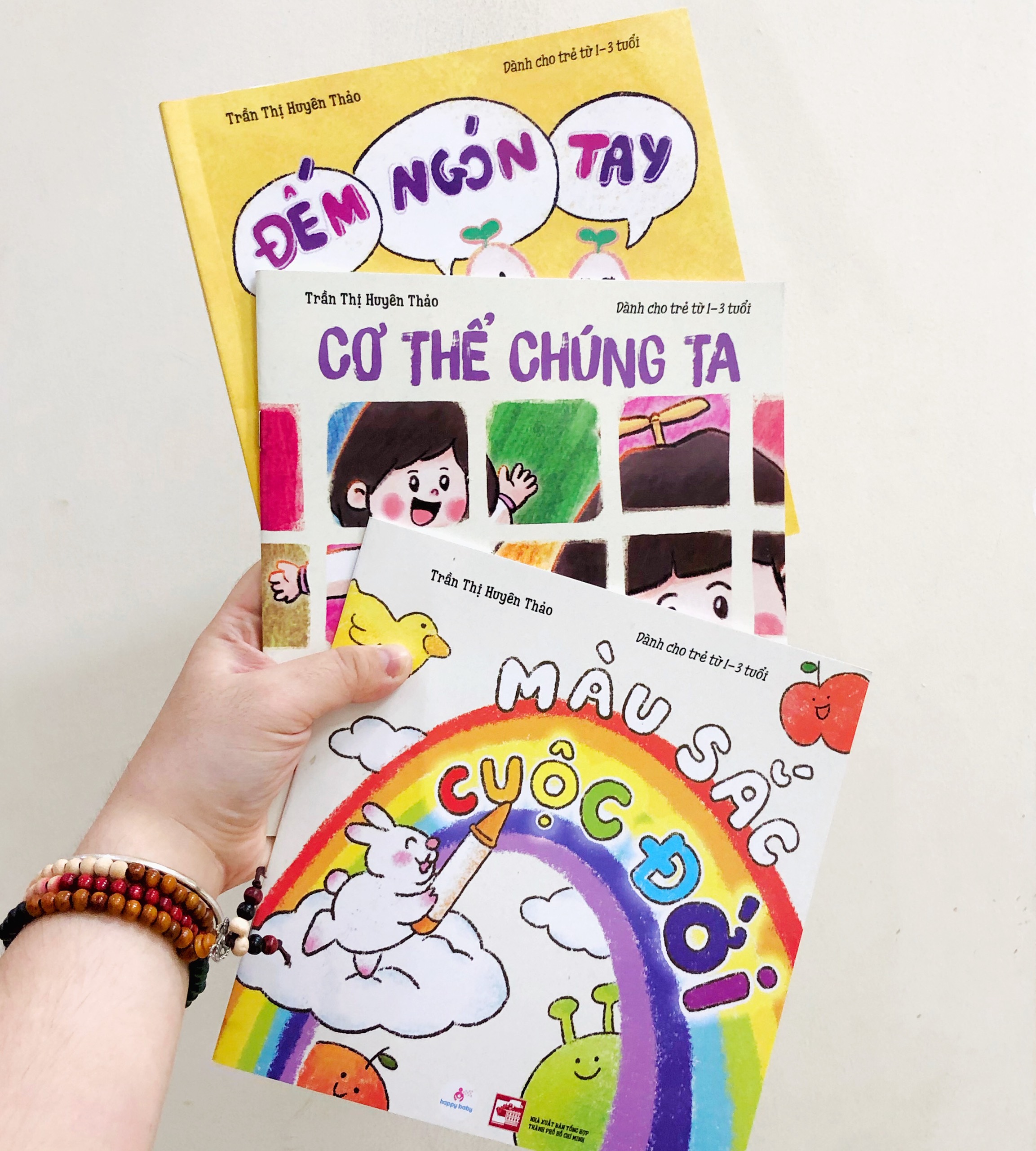 "khi đặt mục tiêu viết cho các bạn tuổi này, mình thấy ba đề tài này là ba đề tài có thể thiết thực nhất cho các con: đếm số, nhận biết màu cơ bản, và nhận biết các bộ phận cơ thể chính!
