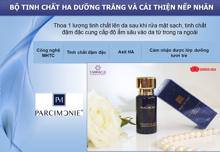 Với Parcimonie Hyaluronic Acid 90 Soothing Booster có tác dụng hiệu quả trong việc dưỡng trắng da an toàn và phù hợp với mọi loại da đồng thời nuôi dưỡng làn da khỏe mạnh, tăng độ đàn hồi và giúp da tràn đầy sức sống và cải thiện nhanh chống tình trạng khô da.