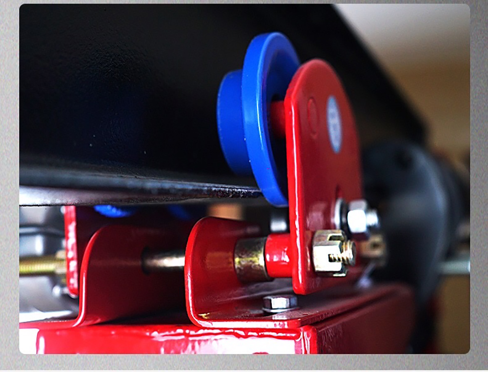 - Sau khi đã gắn lắp được thanh pass vừa với máy tời và điều chỉnh độ rộng của khoảng cách 2 bánh xe phù hợp với dầm, ta tiến hành cố định các ốc vít.