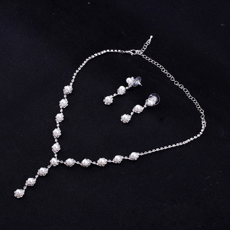 Bộ trang sức 2 món vòng cổ và đôi bông tai chuỗi ngọc trai đơn giản tinh tế, nổi bật, lộng lẫy. Thích hợp trang điểm cô ngày cưới, chụp ảnh cưới, chụp ảnh dã