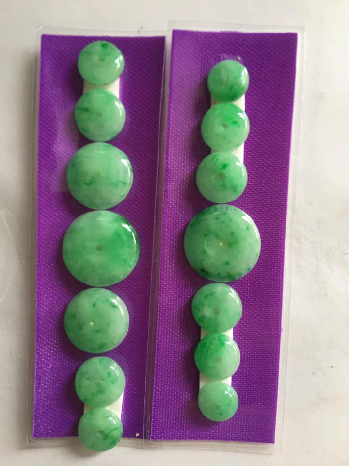 Bộ 5 đồng tiền đá cẩm thạch tự nhiên xanh ngọc đậm đều đẹp Nữ Phối vòng tay,mặt dây chuyền vàng đeo cực kỳ xinh xắn ạ Size hạt 9mm x dầy 3,8mm x lỗ