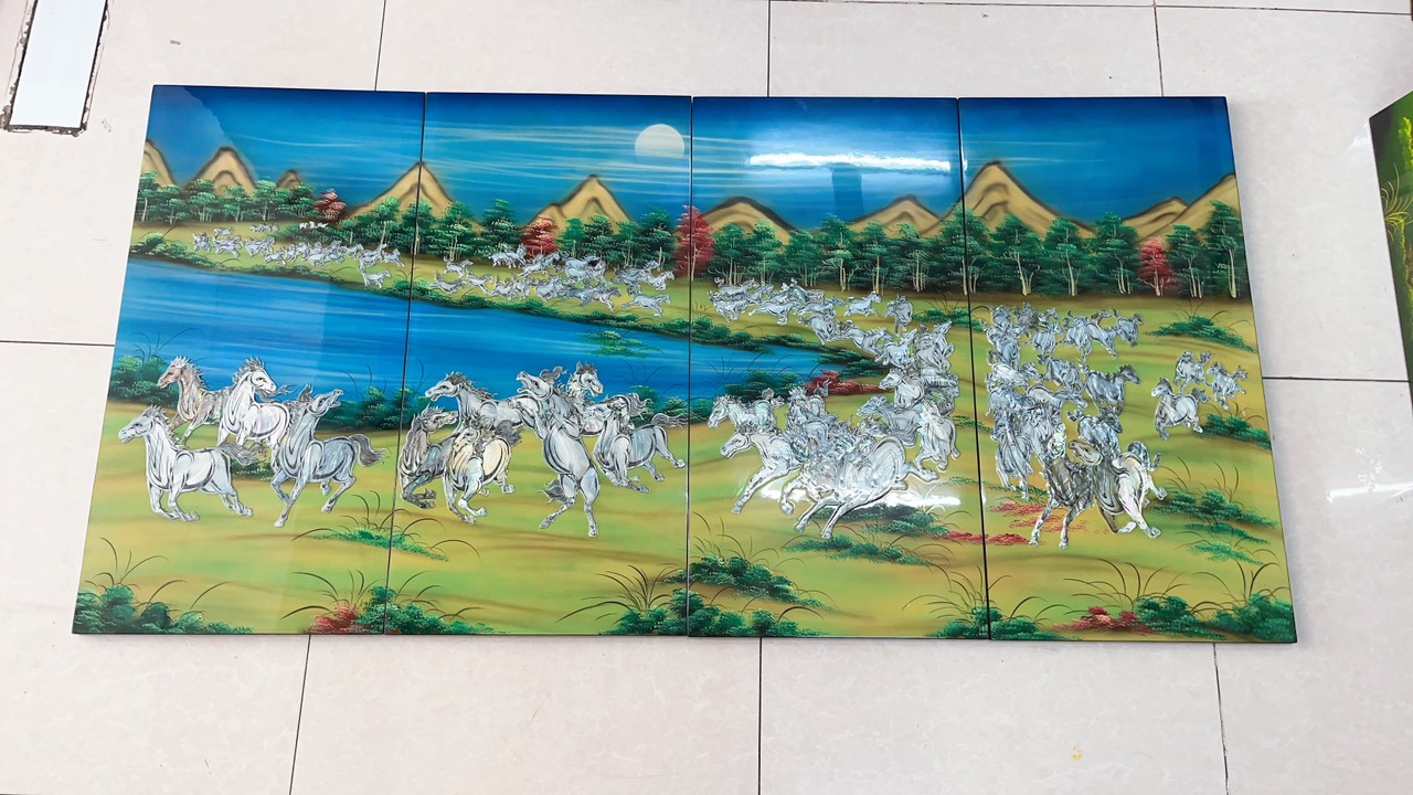 - Kích thước: 50x80 cm gồm 4 tấm( mỗi tấm 20x50 cm)/ 60x120 cm gồm 4 tấm( mỗi tấm 30x60 cm) - Xuất xứ: Sơn mài Việt Nam - Chất liệu: Được làm từ gỗ
