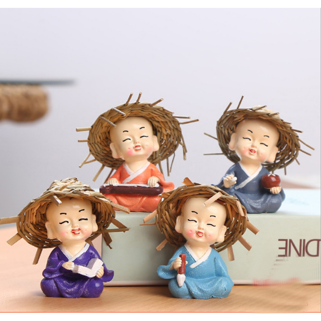 💥Bộ tượng dễ thương, 4 chú tiểu đội nón rơm 0902789569 #tượngchútiểuđộinónrơm