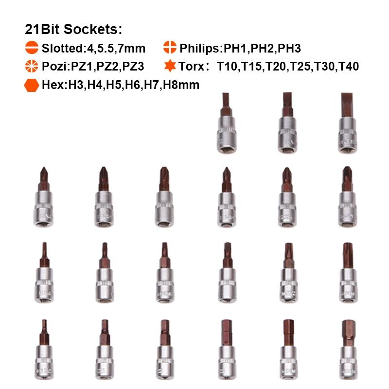 13 đầu khẩu 1/4”: 4 / 4.5 / 5 / 5.5 / 6 / 7 / 8 / 9 / 10 / 11 / 12 / 13 / 14mm