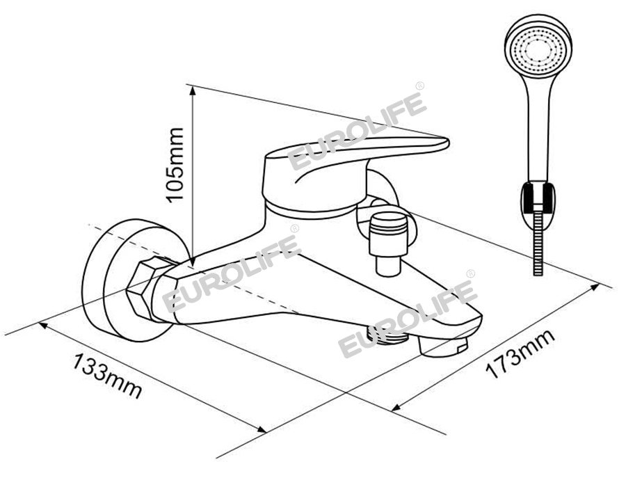 Tay sen siêu tăng áp, 1 chế độ phun nước Eurolife EL-H117 (Trắng bạc) * Thương hiệu: Eurolife - Việt Nam. * Tăng áp 300% so với tay sen thông thường. * Chất liệu: Tay