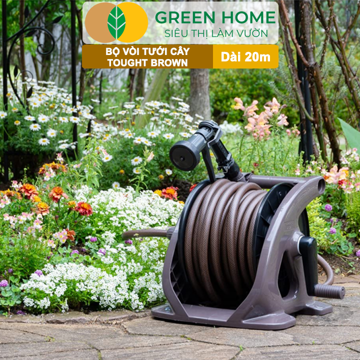 Bạn đang tìm kiếm một bộ dụng cụ tưới cây vừa tiện lợi, vừa bền bỉ lại dễ sử dụng? Bộ vòi tưới cây Tough Brown đến từ Nhật Bản chính là sự lựa chọn hoàn hảo. Với thiết kế thông minh, chất liệu cao cấp và tính năng đa dạng, sản phẩm này sẽ giúp công việc chăm sóc sân vườn của bạn trở nên đơn giản và thú vị hơn bao giờ hết. Cùng Greenhome khám phá chi tiết để thấy vì sao Tough Brown là lựa chọn lý tưởng cho mọi khu vườn! Bộ vòi tưới cây Tough Brown nổi bật với công nghệ chống xoắn độc đáo, vòi phun 4 chế độ và vật liệu siêu bền. THÔNG SỐ KỸ THUẨT BỘ VÒI TƯỚI CÂY TOUGH BROWN - Xuất xứ: 100% sản xuất và nhập khẩu từ Nhật Bản. - Màu sắc: Nâu - Kích thước: 340 x 320 x 290 mm (Rộng x Sâu x Cao). -Trọng lượng: 4.47 kg. - Chiều dài dây: 20 mét. - Đường kính trong ống : 12mm - Vòi tưới: 4 chế độ phun - Chất liệu khung: Nhựa PP cao cấp, có khả năng chống tia UV, giúp sản phẩm không phai màu, không giòn gãy dưới nắng. - Cấu trúc ống nước: + Gồm 3 lớp bền bỉ (2 lớp PVC, 1 lớp chỉ PE). + Công nghệ chống gập gãy, đảm bảo độ bền và dòng chảy ổn định. - Khả năng chịu nhiệt: lên đến 60°C (140°F) - Phụ kiện đi kèm: Hộp cuộn ống, vòi phun, núm vòi và đầu nối - Phù hợp cho: Ban công, sân thượng và các khu vườn diện tích nhỏ Bộ vòi tưới cây Tough Brown được làm từ nhựa PP cao cấp có khả năng chống tia UV, đảm bảo độ bền vượt trội theo thời gian Cấu trúc ống xoắn độc đáo giúp hạn chế tối đa tình trạng rối dây, trong khi bề mặt nhẵn giảm ma sát, ngăn các vòi dính vào nhau - ĐẶC ĐIỂM NỔI BẬT CỦA BỘ VÒI TƯỚI CÂY TOUGH BROWN + Công nghệ chống soắn và chống rối độc quyền + Thiết kế dạng xoắn ốc linh hoạt, dễ thu gọn sau khi dùng, không bị rối khi kéo ra hay cuộn lại. + Tay xách chắc chắn, hỗ trợ di chuyển và bảo quản dễ dàng hơn. + Bề mặt ống nhẵn kết hợp thiết kế xoắn ốc giúp tự điều chỉnh tại các điểm gấp khúc, đảm bảo nước chảy liên tục. + Chất liệu dây chống mốc, tăng tuổi thọ sản phẩm khi dùng ngoài trời. + Thiết kế nhỏ gọn, hiện đại, phù hợp với nhiều không gian sân vườn. + Hệ thống đóng mở nước nhẹ nhàng, kèm đầu kẹp tiện lợi để cố định khi cần. Chịu được áp suất nước lên đến 3.5MPA - Vòi phun 4 chế độ nước linh hoạt + Vòi phun được thiết kế tinh tế, dễ cầm nắm và tích hợp 4 chế độ phun, đáp ứng mọi nhu cầu chăm sóc cây cối: + Phun sương (Mist): Hạt nước siêu nhỏ, lý tưởng để tưới hoa lan, cây non và các loại cây mỏng manh. + Phun tia thẳng (Straight): Tia nước mạnh, tập trung, có thể vươn xa, dùng để vệ sinh sân vườn, rửa dụng cụ hoặc xe cộ. + Phun xòe (Shower): Tia nước tỏa rộng, hoàn hảo để tưới các bồn hoa, cây cảnh. +
