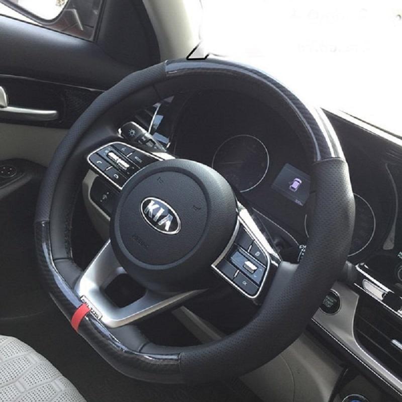 Bọc vô lăng Da Thật D cut - Bọc Thể Thao Da TPU Cao Cấp - Bọc tay lái D cut CacBon, SIZE 38cm