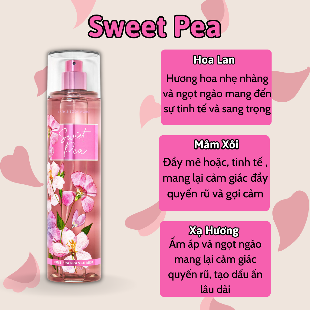 Mua tại TiktokBody Mist Bath And Body Works Nam Nữ Chính Hãng Sweet Pea, Xịt Thơm Body Toàn Thân Hương Nước Hoa 236ml