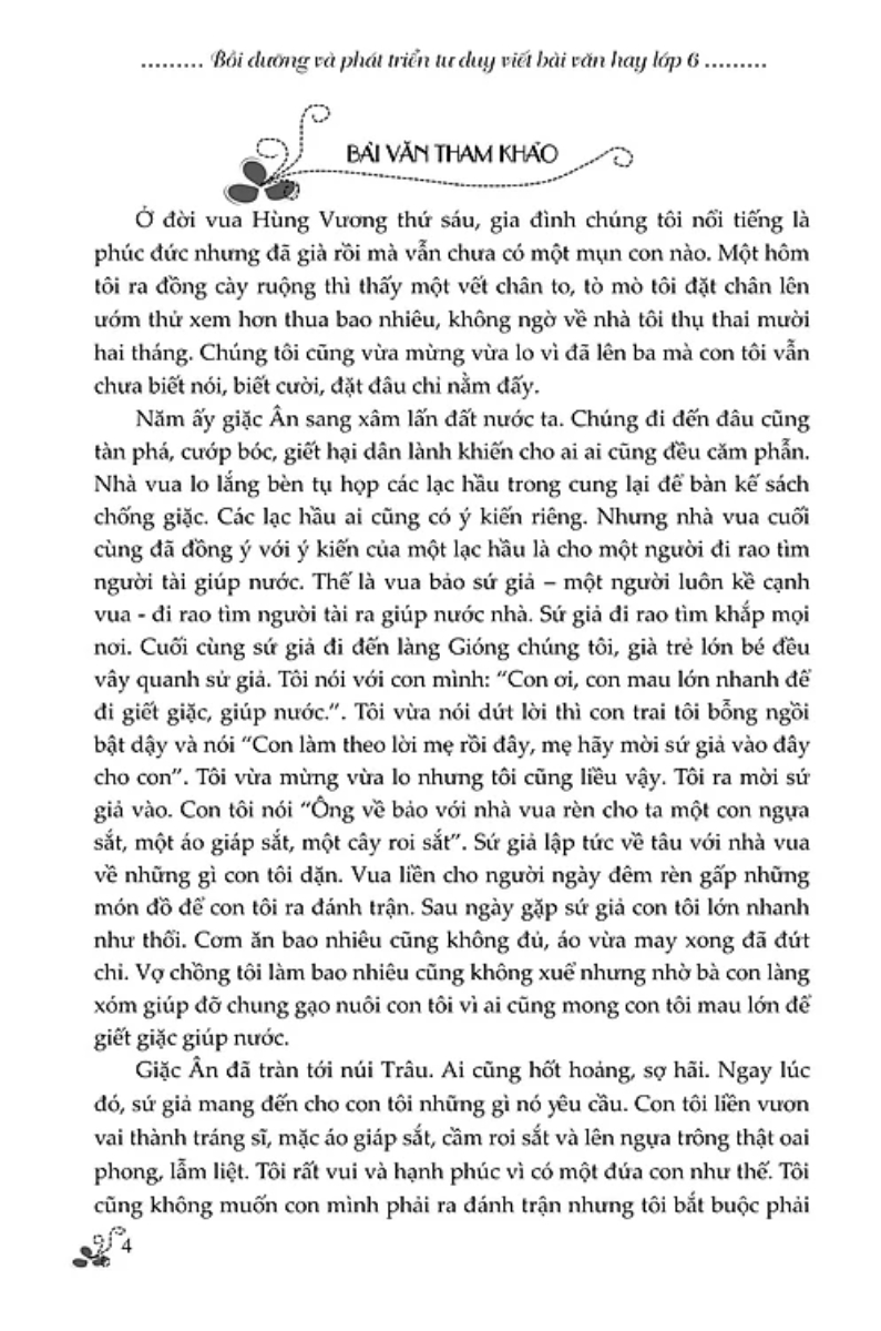 BỒI DƯỠNG VÀ PHÁT TRIỂN TƯ DUY VIẾT BÀI VĂN HAY LỚP 6 (Dùng chung cho 3 bộ SGK theo chương trình mới)