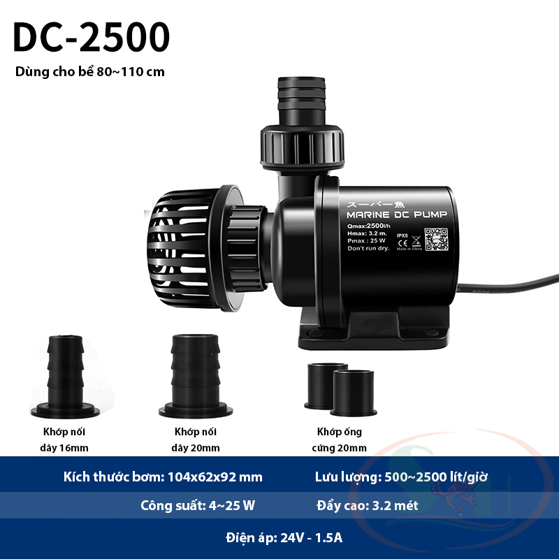 Bơm điện tử Marine DC Pump chuyên dụng để bơm chất thải, nước bể cá tép, hòn non bộ Bơm có chế độ tự ngắt khi lọc bị air khí, khi nhiệt độ quá 70 độ, khi hở điệ với tính năng báo lỗi trên màn hình. Ngoài ra Marine DC Pump tích hợp bộ dimmer điều chỉnh tăng giảm được 100 cấp độ bơm vô cùng tiện lợi.