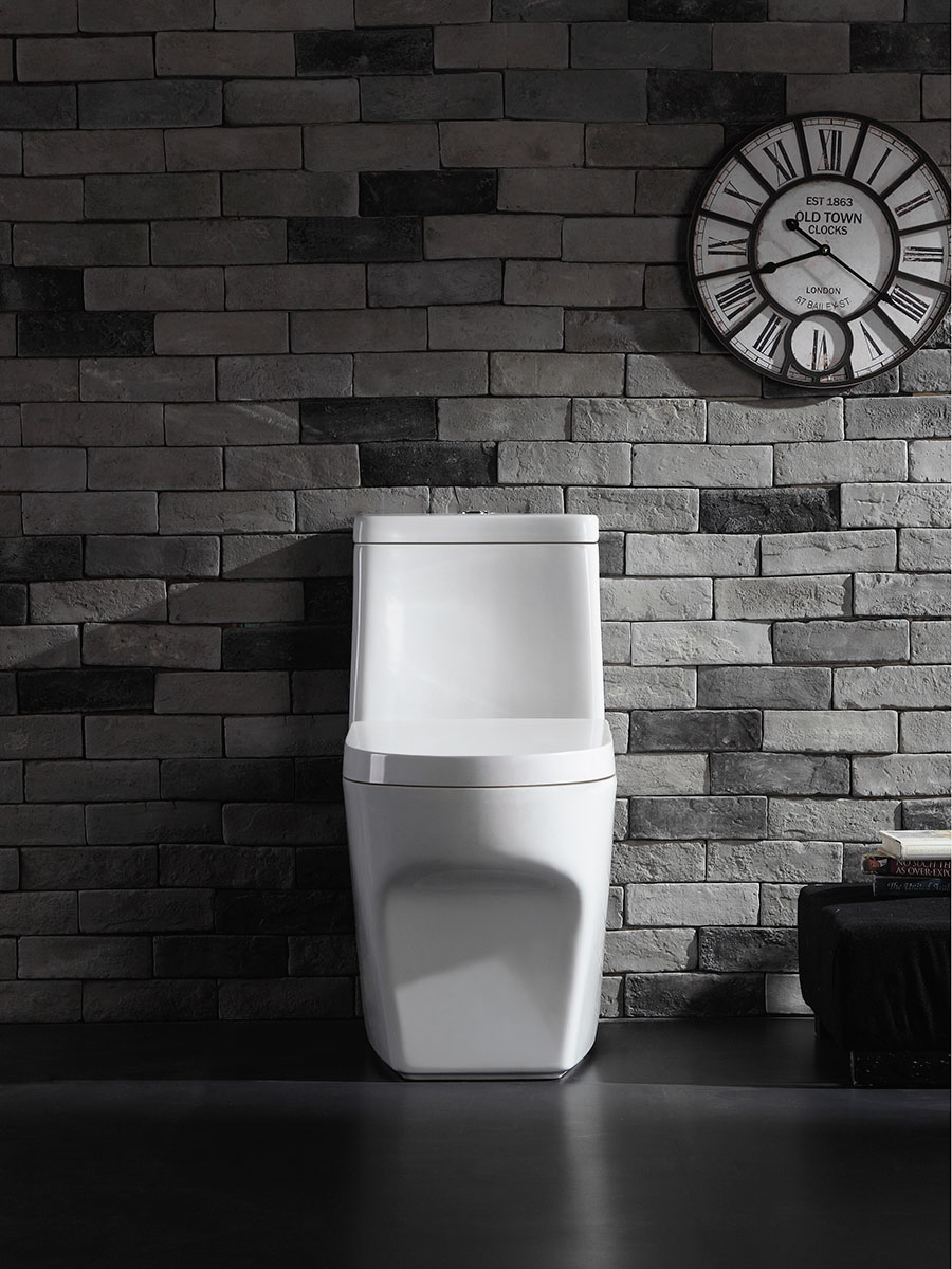 Bồn cầu được thiết kế vuông, khỏe khoắn, tạo lên sự sang trọng cho phòng vệ sinh.