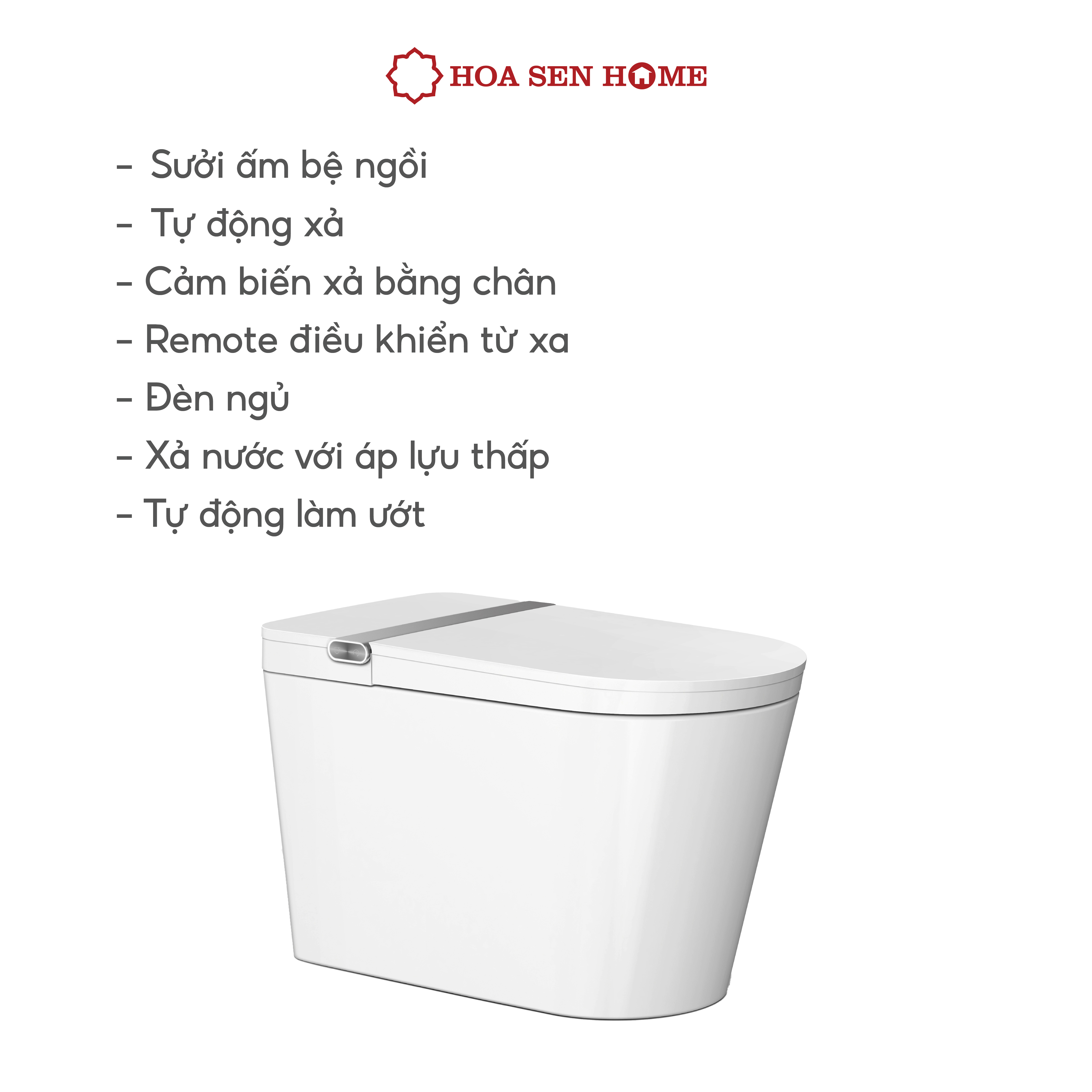 - Bồn cầu thông minh hoàn toàn tự động - Kiểu dáng: Bồn cầu đặt sàn sang trọng và đẳng cấp - Công nghệ FFC hiện đại, vật liệu từ cao lanh chất lượng cao