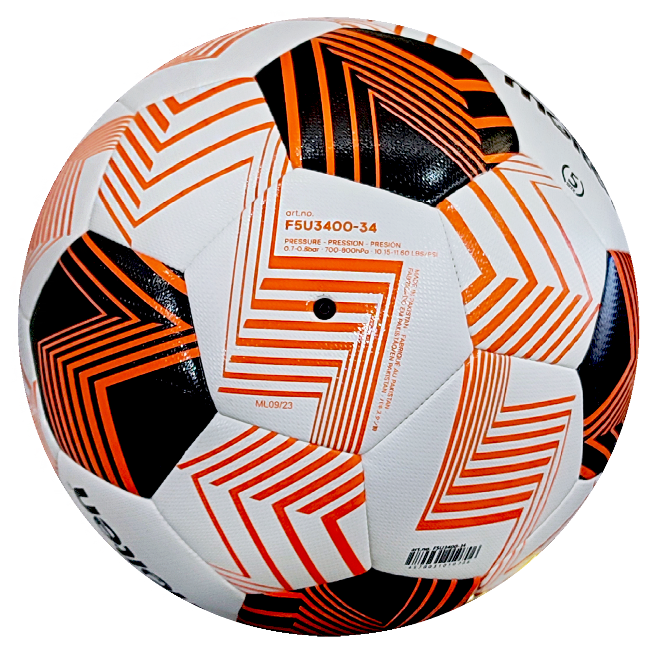 Bóng đá Molten F5U3400-34 - Thiết kế Europa League mùa giải 2023/2024 - Số miếng ghép : 32 - Chất liệu da: PU - Ruột bóng: Latex - Nơi sản xuất: Pakistan - Size: 5