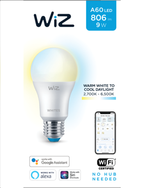 ✨Bóng đèn WiZ thay đổi nhiệt độ màu Wi-Fi TunableWhite/9W A60 927-65