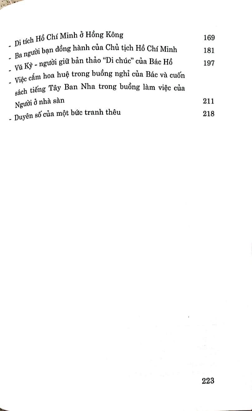 Mua tại TiktokCuốn sách tập hợp những bài viết tâm huyết của TS. Chu Đức Tính – nguyên Giám đốc Bảo tàng Hồ Chí Minh, về quá trình hoạt động cách mạng của Chủ tịch Hồ Chí Minh, đồng thời giới thiệu về những nơi, những con người thầm lặng đã có công lao trong việc gìn giữ những di sản ấy, trong đó, Bảo tàng Hồ Chí Minh chính là cơ quan giữ vai trò quan trọng nhất trong công tác này.