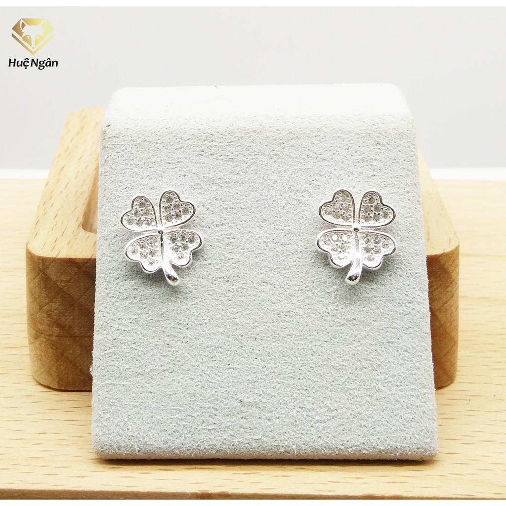 Khuyên tai bạc 925 cao cấp Cỏ 4 lá may mắn đính đá tinh tế