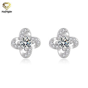 Khuyên tai bạc 925 cao cấp Cỏ 4 lá may mắn đính đá tinh tế