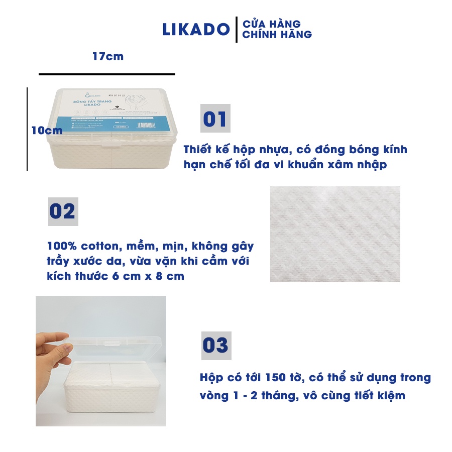 Mua tại TiktokBÔNG TẨY TRANG LIKADO HỘP 150 MIẾNG: